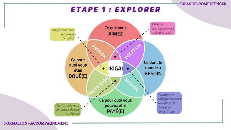 Le bilan de compétences, c’est l’occasion de faire le point sur votre parcours, vos envies et vos talents pour construire un projet professionnel qui vous correspond vraiment. Et pour ça, on va s’appuyer sur un outil puissant : l’IKIGAI, ce concept japonais qui permet de trouver sa raison d’être.